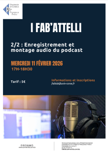 Cet atelier est la suite du premier et vous permettra d’apprendre à enregistrer et monter l’audio de votre podcast, pas à pas, dans un cadre accessible à tous.
